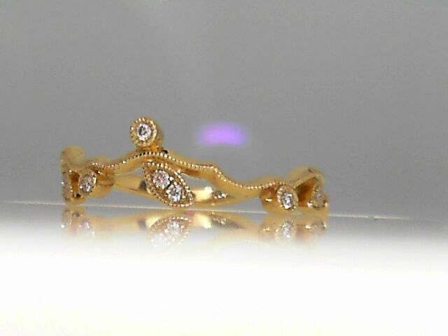 14 Karat Yello Gold Milgrain Vintage Vine Fashion Ring Size 6.5 With 10=0.08Tw Round G/H Si2 Diamonds