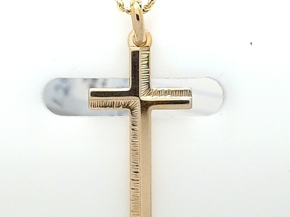 7.33 Grams yellow gold cross and rope chain (cross 32.30mm x 17.20mm)