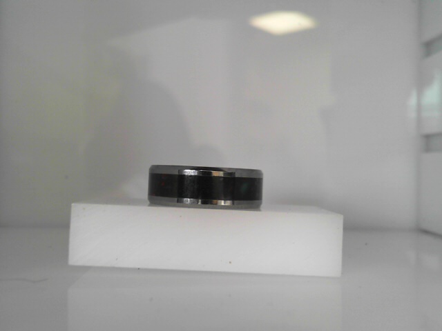 Alternative Metals METAL TYPE: Tungsten Carbide WOOD/INLAY: Bloodstone WIDTH: 8 PROFILE: Flat Beveled FINISH: Polished SIZE: 10 VEND STYLE#: 6371-TCBI-w8-s100