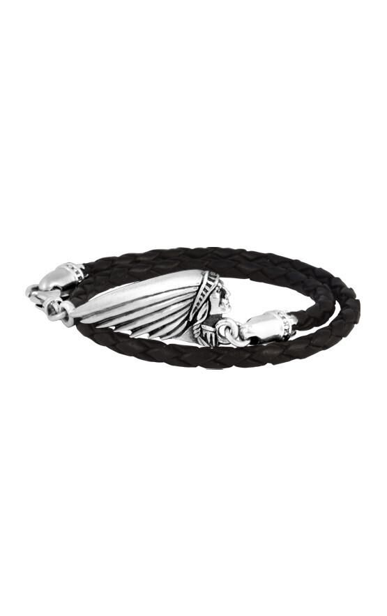 Black & Silver Leather & Silver Indian Headdress Bracelet Length 8.75
