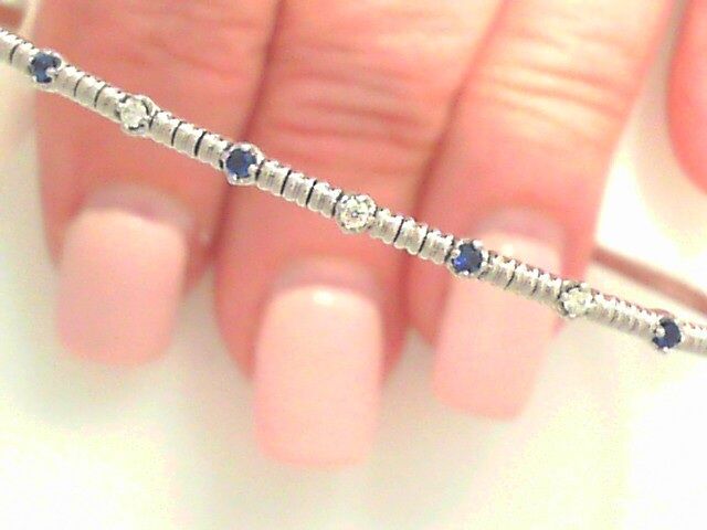GEMMA COUTURE Lady’s White 14 Karat Half Way Natural Diamonds And Blue Sapphires Flexible Bangle Bracelet 6 = 0.12tw Round Blue Sapphires