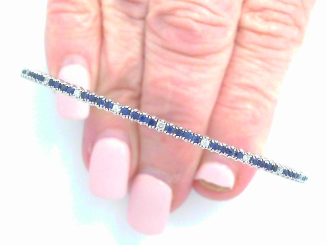 GEMMA COUTURE Lady’s White 14 Karat Halfway Blue Sapphire And Natural Diamond Flexible Bracelet Bracelet 10 = 0.15tw Round G VS2 Diamonds