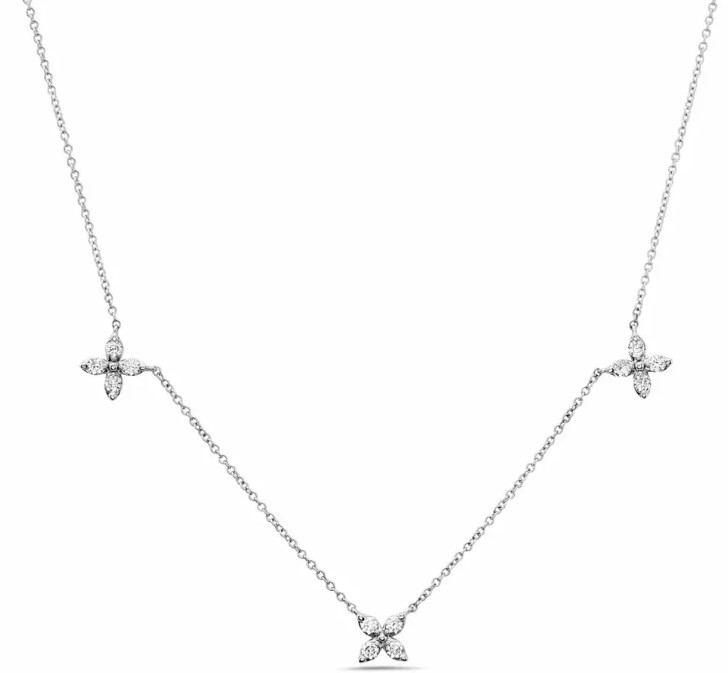 Gemma Couture Lady’s White 14 Karat Mariposa 3 Station Necklace Length 17 12 = 0.36tw Round F/G SI1 Diamonds Style: Cable Link
