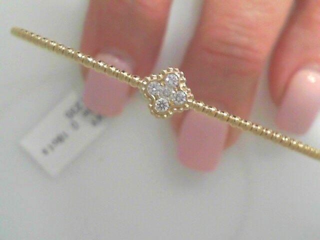 GEMMA COUTURE Lady’s Yellow 14 Karat Flexible Ball Bangle With Diamond Flower Center Bracelet 5 = 0.18tw Round G SI1 Diamonds