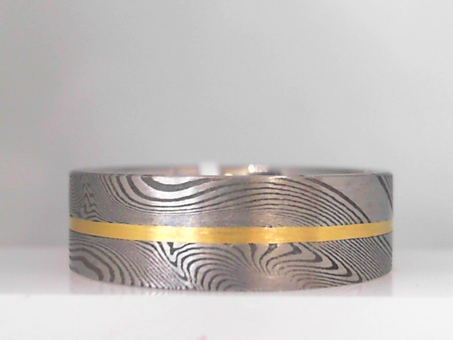 Gent’s Two Tone 18K Yg & Stainless Satin Mokume Fashion Ring Size 10.5-Comfort Fit