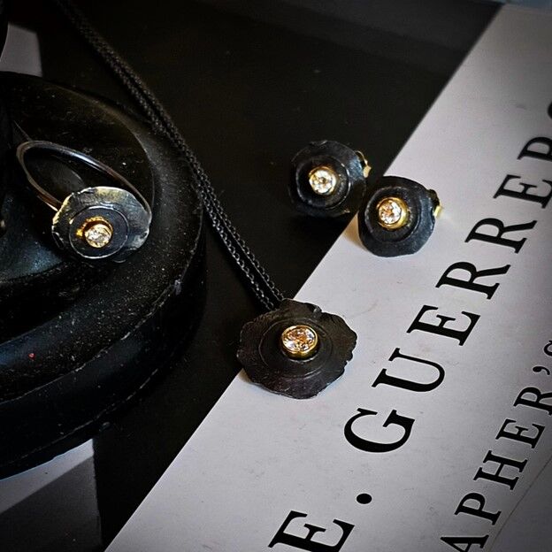 Gold and Smoke Unframed Sm Simple Unframed Oxidized Sterling Silver Gld/Blk Dia Fashion Ring Size 6 one 0.10ct Round Black Diamond