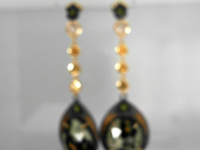 Green Goddess earrings – 14ky/24k inlay/Oxidized sterling silver, Faceted Ocean jasper (2)0 15x15mm, Green Tourmaline (4) 3mm, Citrine 3.7mm, diamonds (.25ctw)