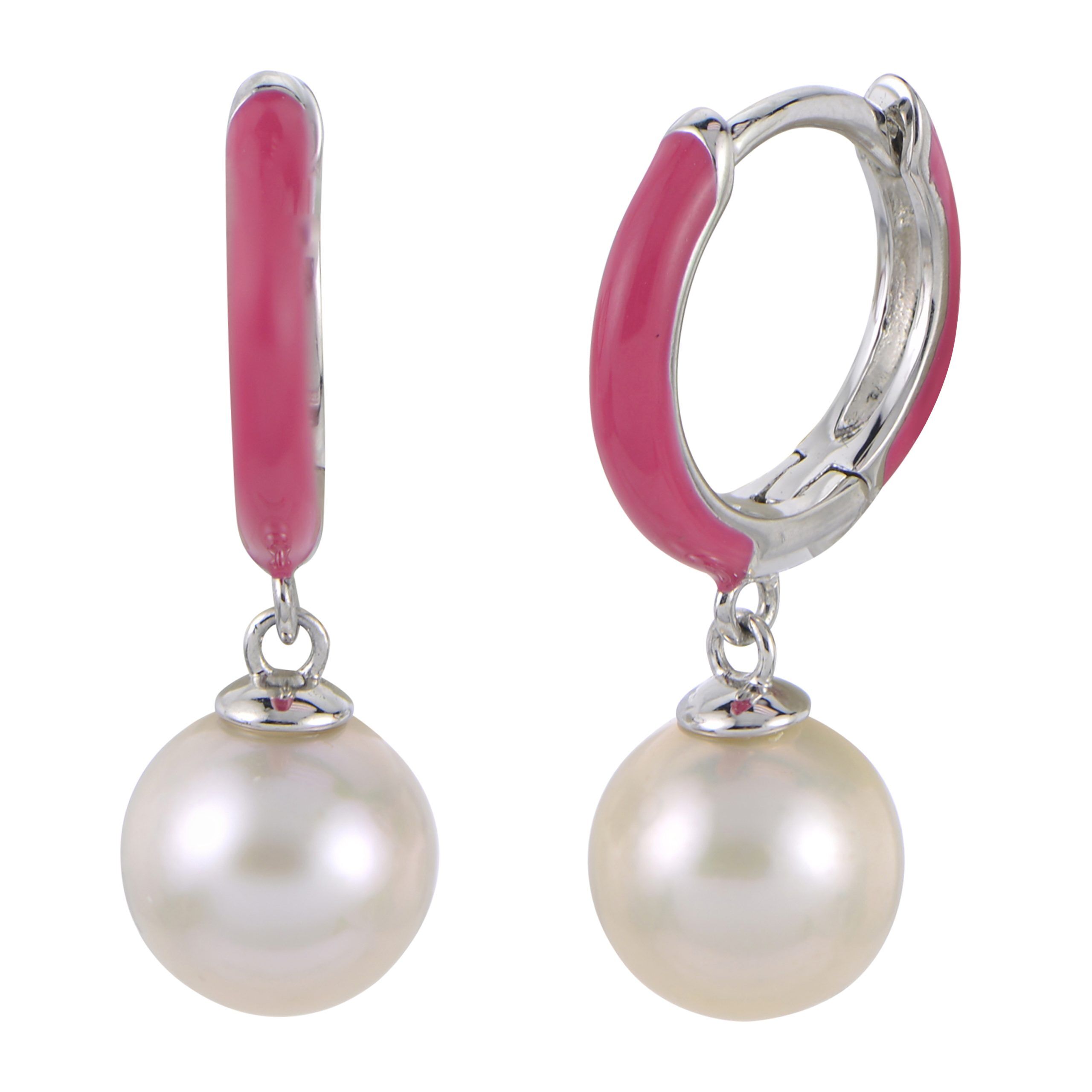 925 7-7.5MM FWCP HOT PINK RESIN ENAMEL HOOP EARRING