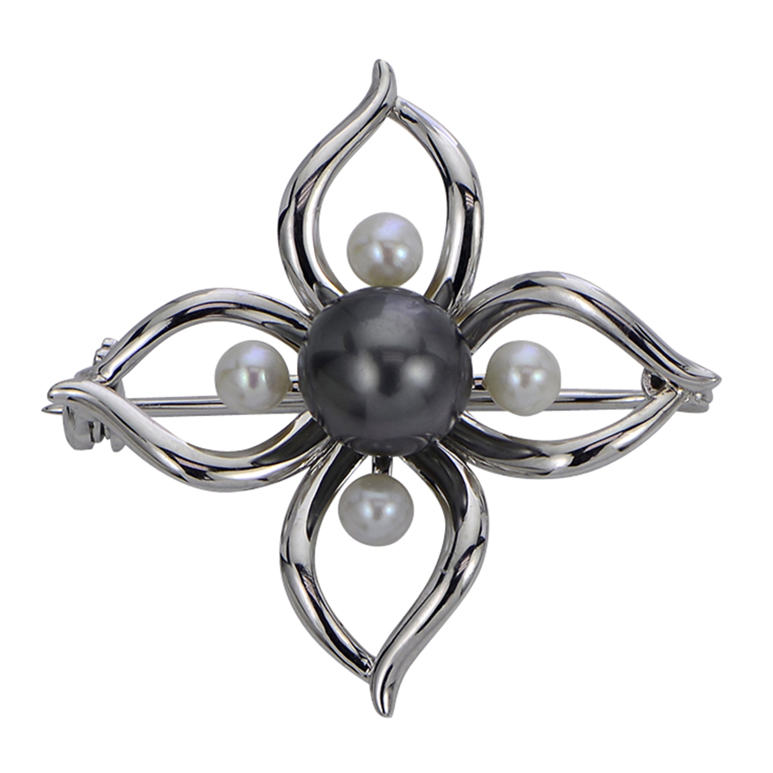 925 7-8MM TAHITIAN SSCP / 3.5-4MM FWCP FLOWER BROOCH