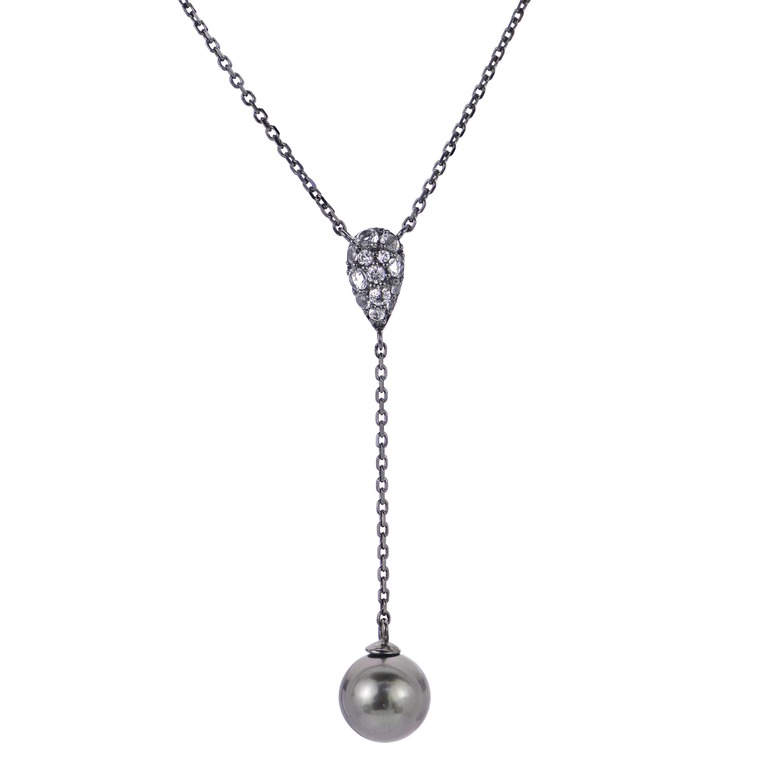18″ 925 BLK RHD 8-9MM TAHITIAN & WHITE TOPAZ NECKLACE
