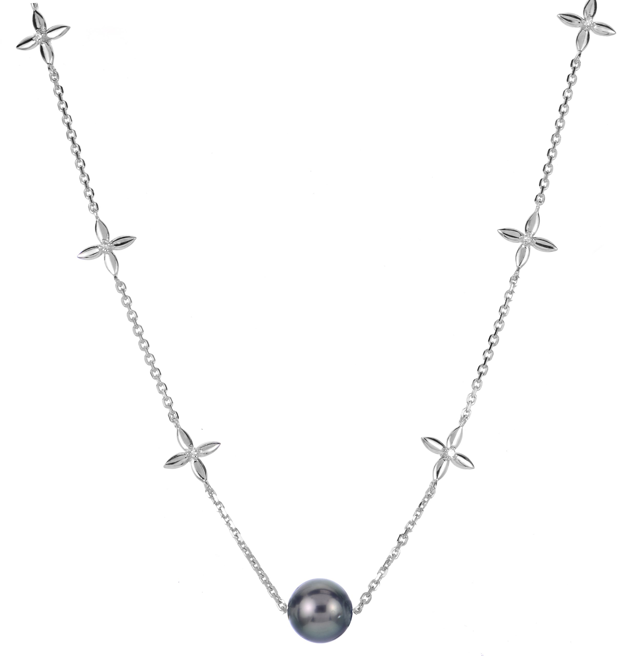 17″/15″ 925 7-8MM TAHITIAN CP DIAMOND NECKLACE