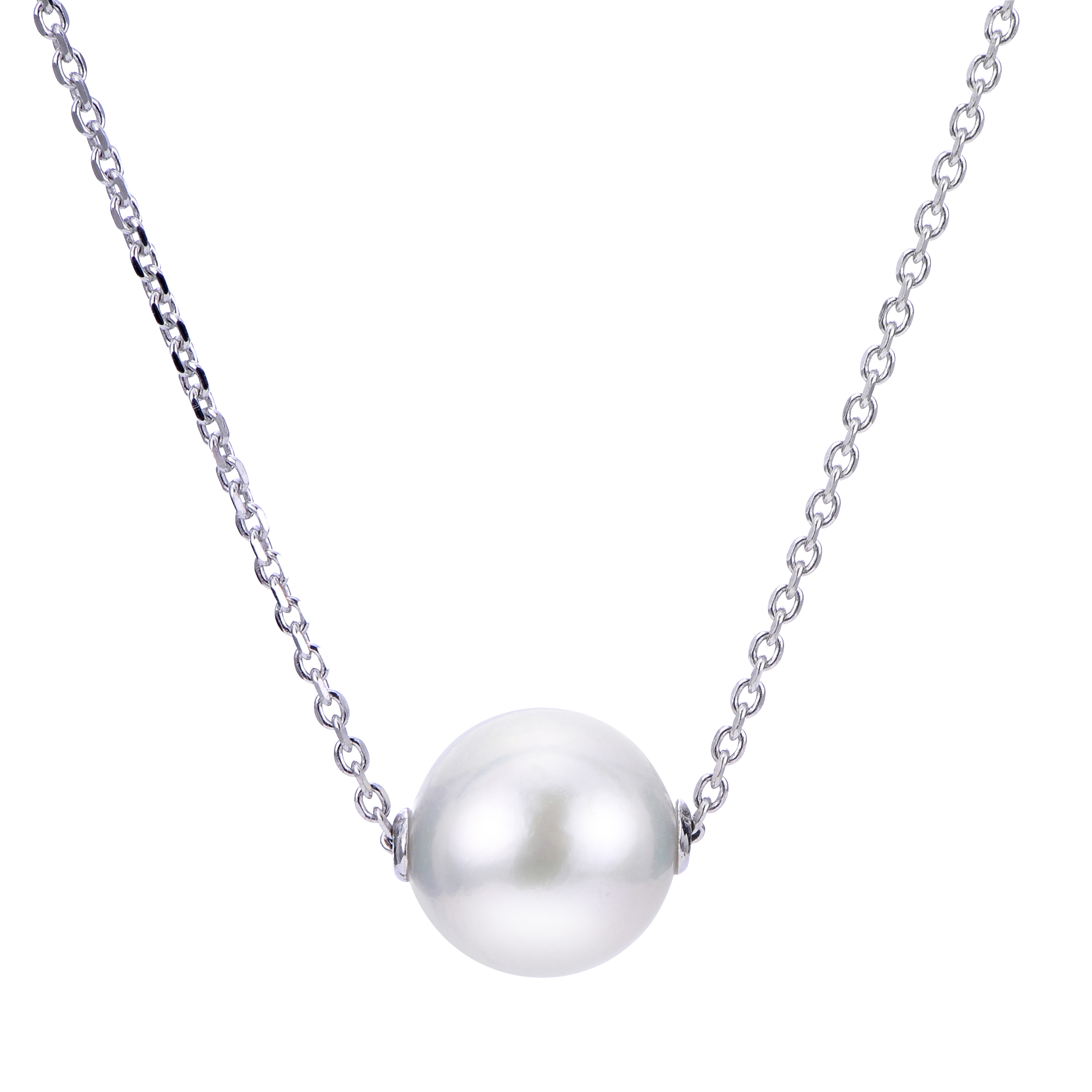 18″+2″ EXT 925 11-12MM FWCP WHITE NUCLEATED SOLITAIRE NECKLACE