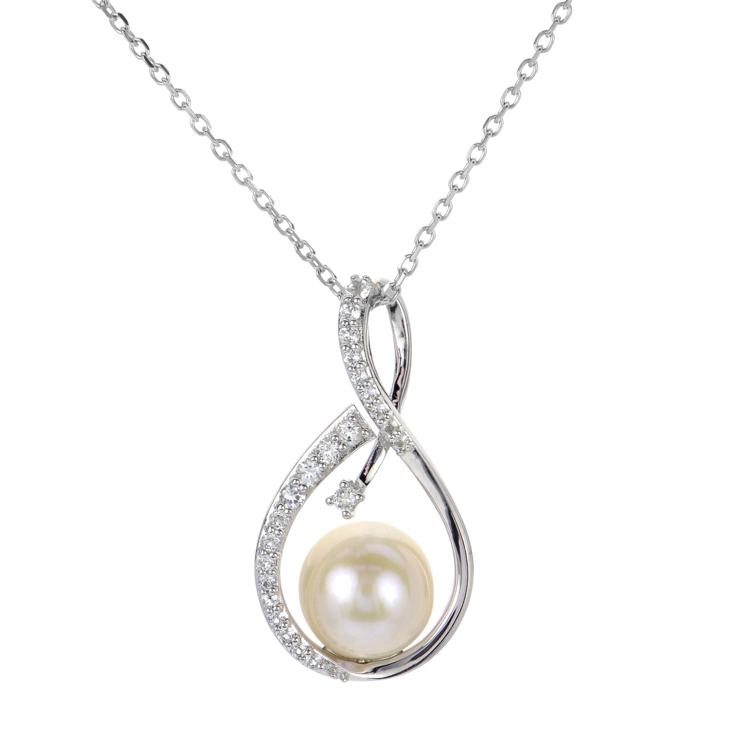 18″/16″ ADJ 925 7.5-8MM FWP & WHITE TOPAZ PENDANT