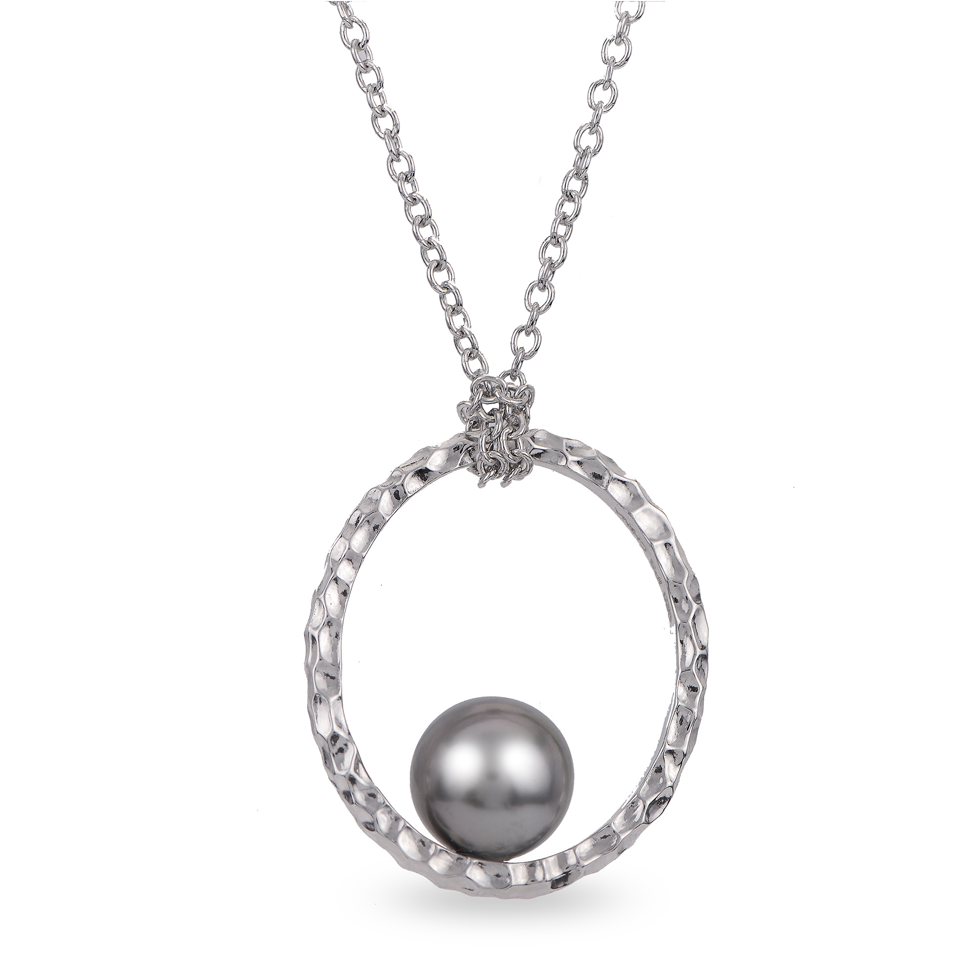 18″+ 2″ EXT 925/RH 8-9MM TAHITIAN CULT PEARL HAMMERED TEXTURED CIRCLE PENDANT MOUNTING