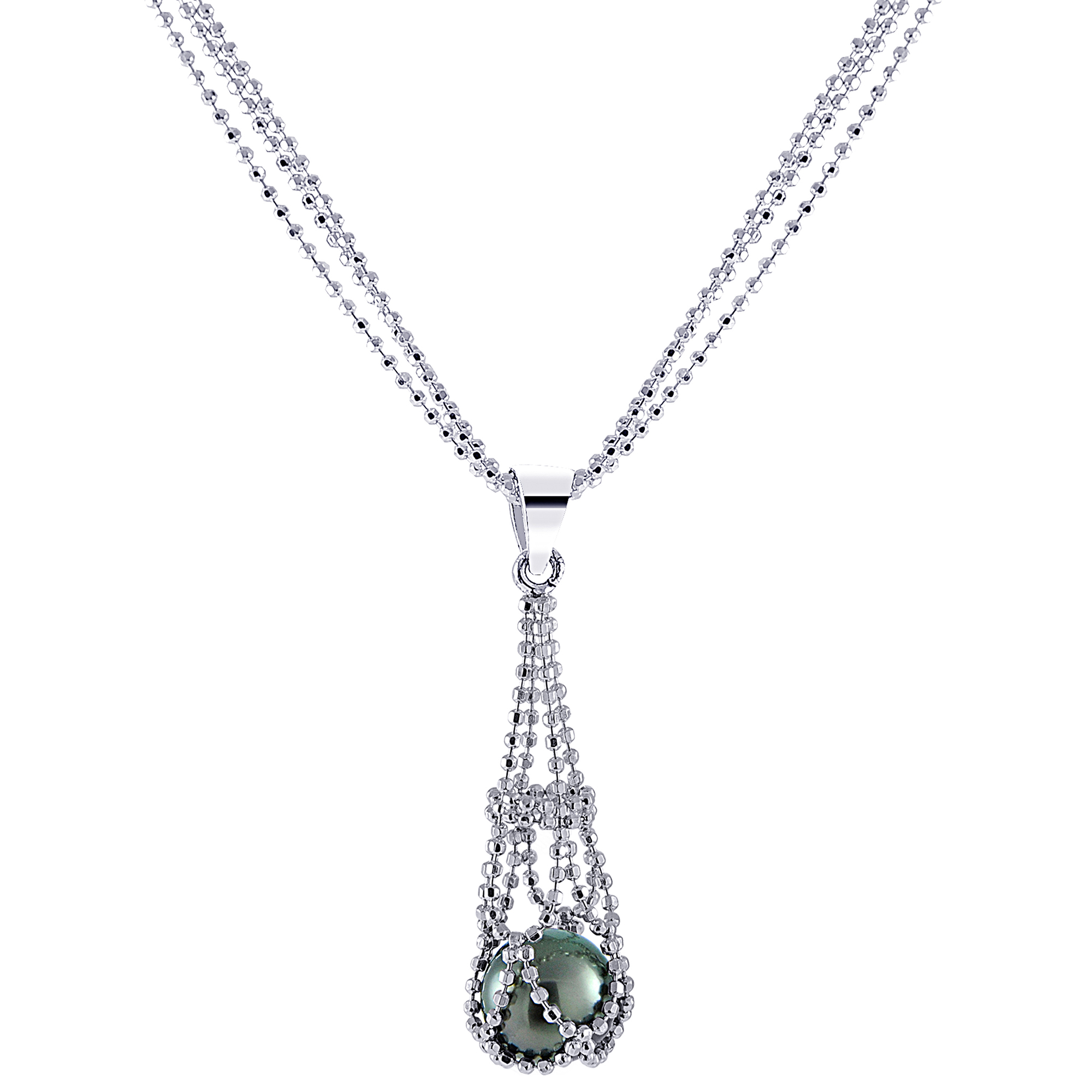 925 18″ 3 STR IMPERIAL LACE 8-9MM TAHITIAN PENDANT