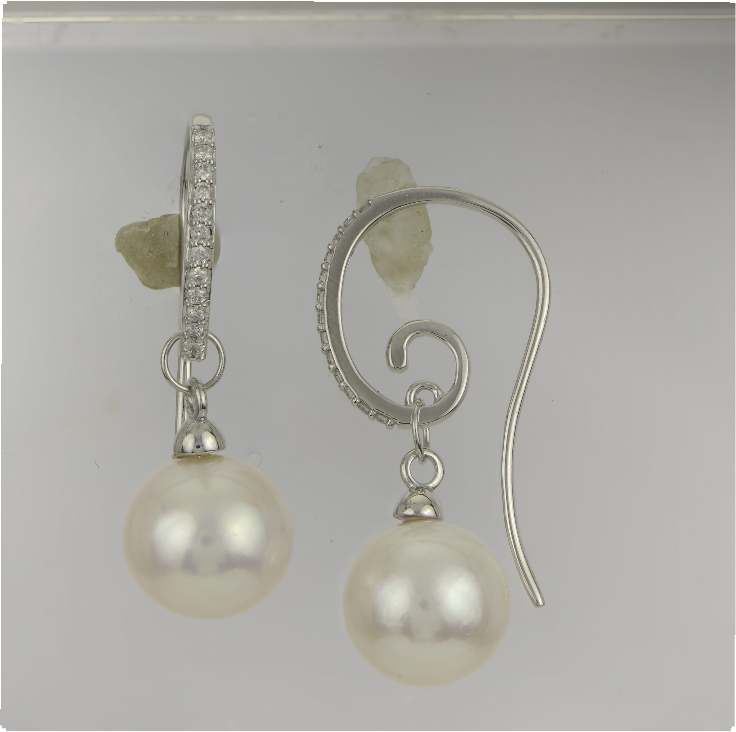 14KW 10-11MM WINDSOR FW CUL PEARL & DIA (.82 CTW) HOOK EARRING
