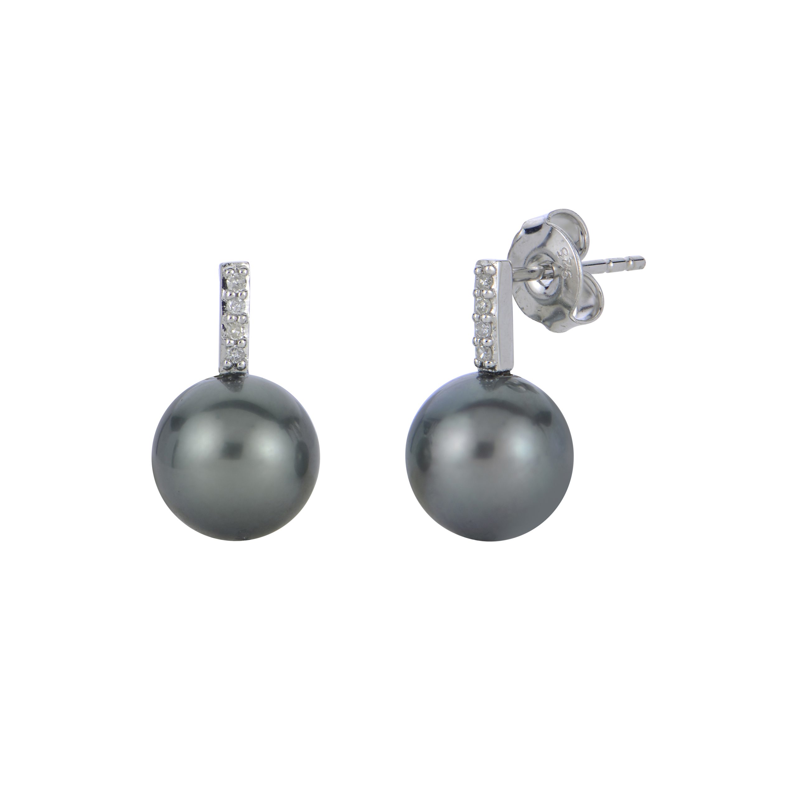 14KW 8-8.5MM TAHITIAN CP & DIAMOND EARRING