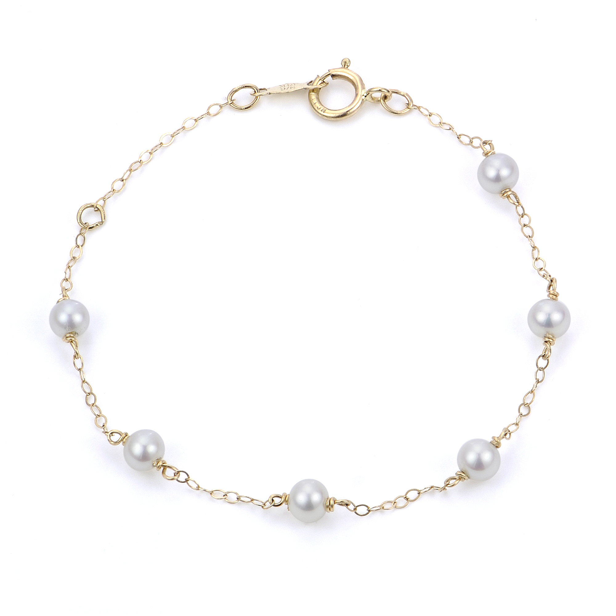 14K 5″ W/1″ EXT 4-4.5MM “AA” FWCP STATION BRACELET