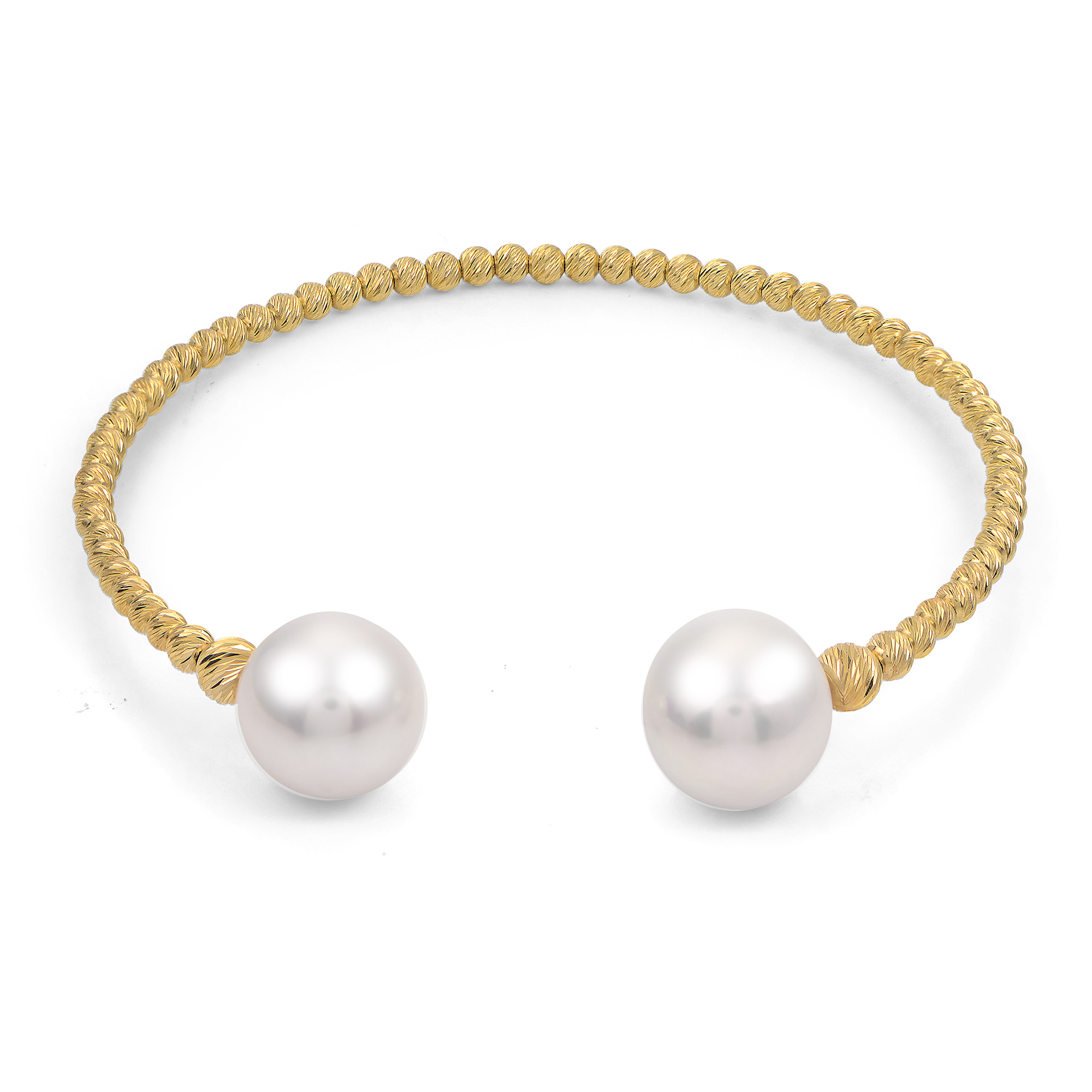 14KY 10-11MM FW CULT PEARL WINDSOR OPEN CUFF BRILLANCE BEAD BRACELET