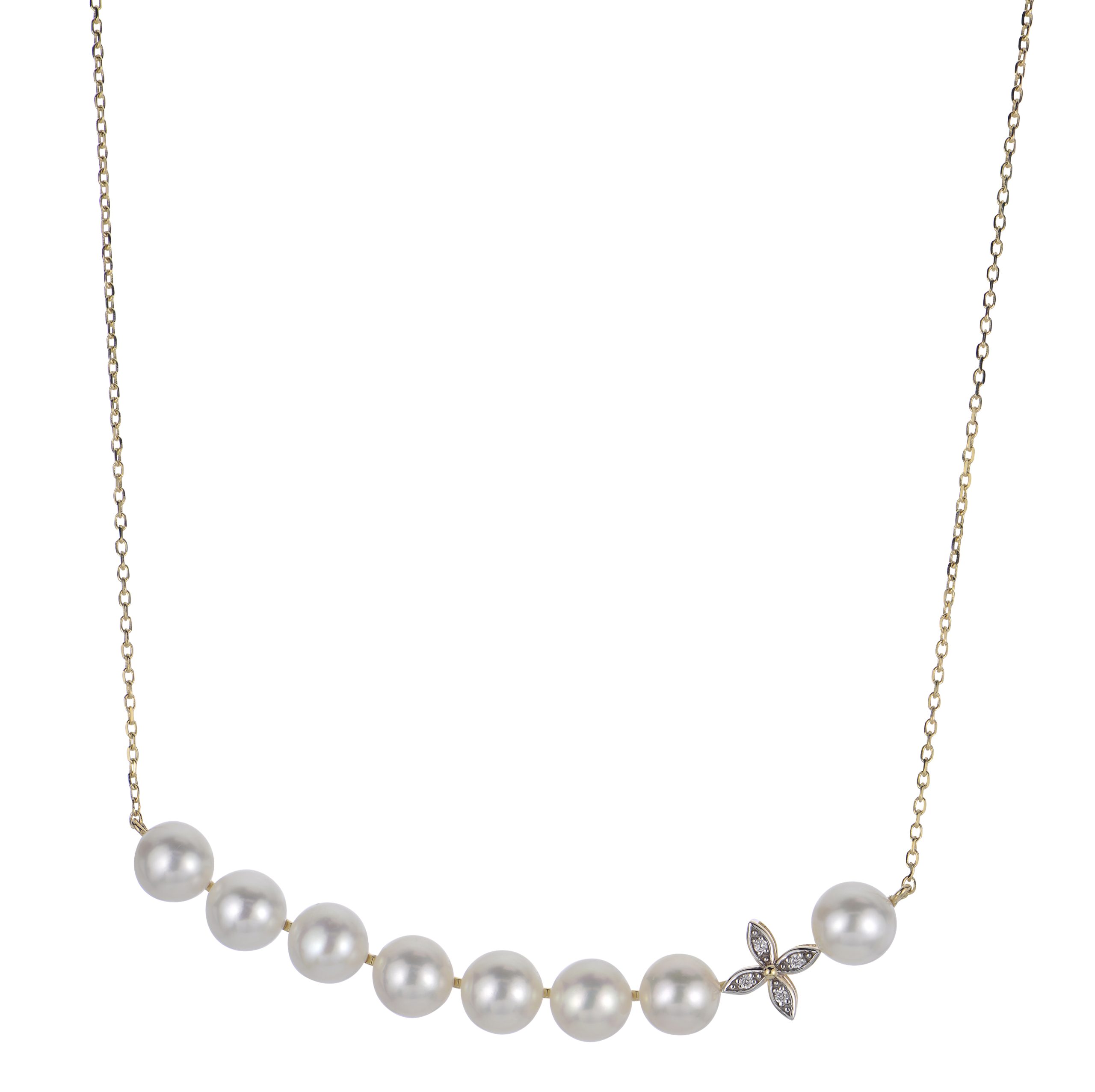 18″ 14KY 6-6.5MM AA FWCP & DIA 4 PETAL FLOWER NECKLACE