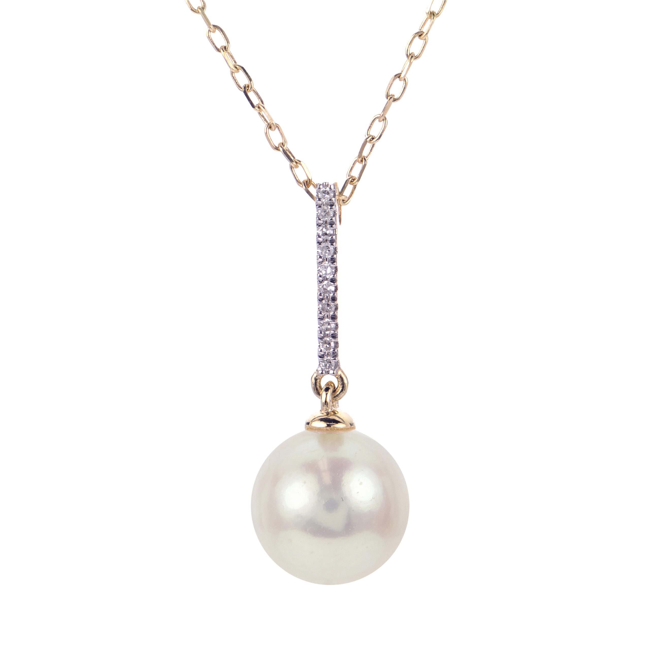 14K 18/16″ ADJ 8.5-9MM “AA” FWCP & DIAMOND NECKLACE