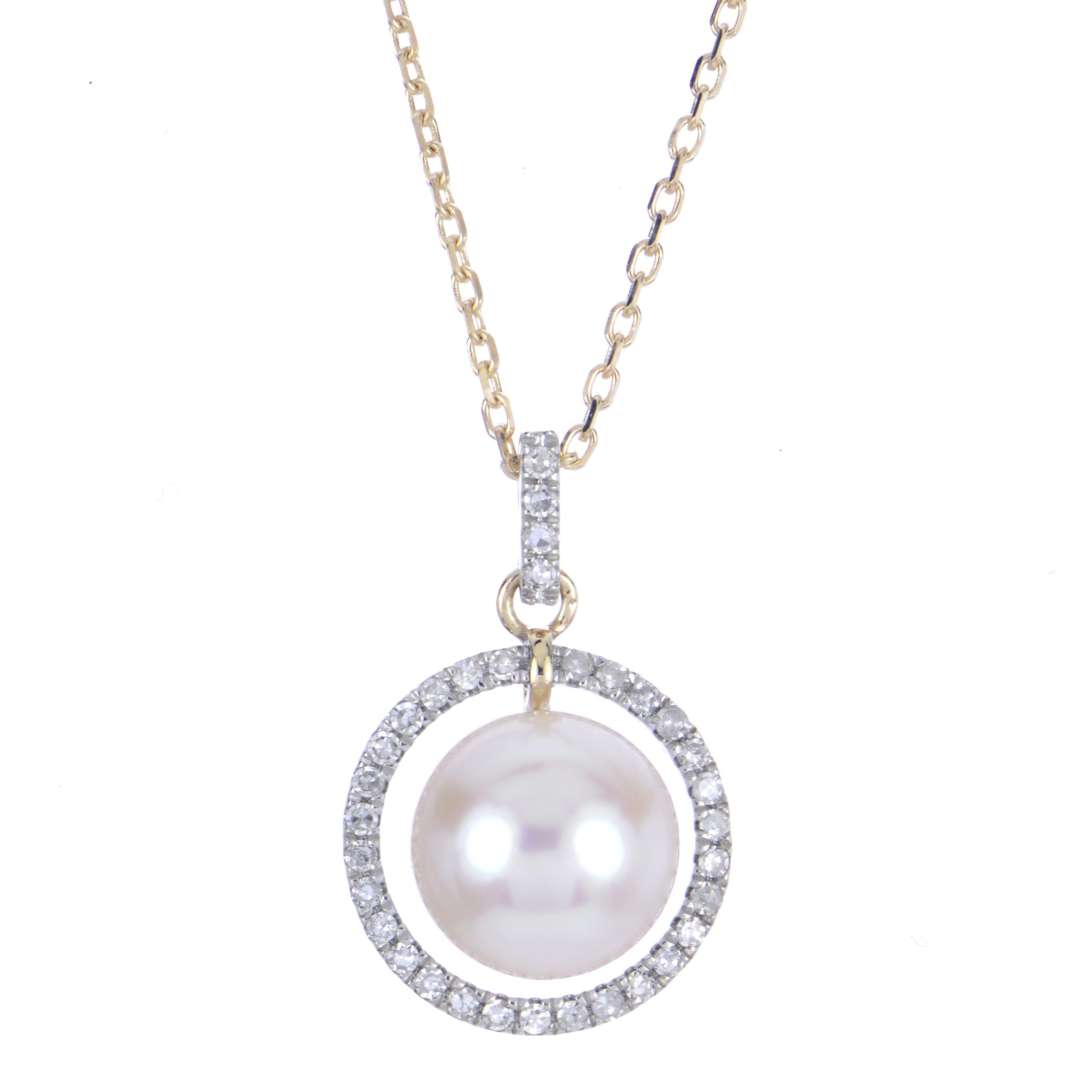 18″ 14KY 7.5-8MM AA FWCP & DIA NECKLACE