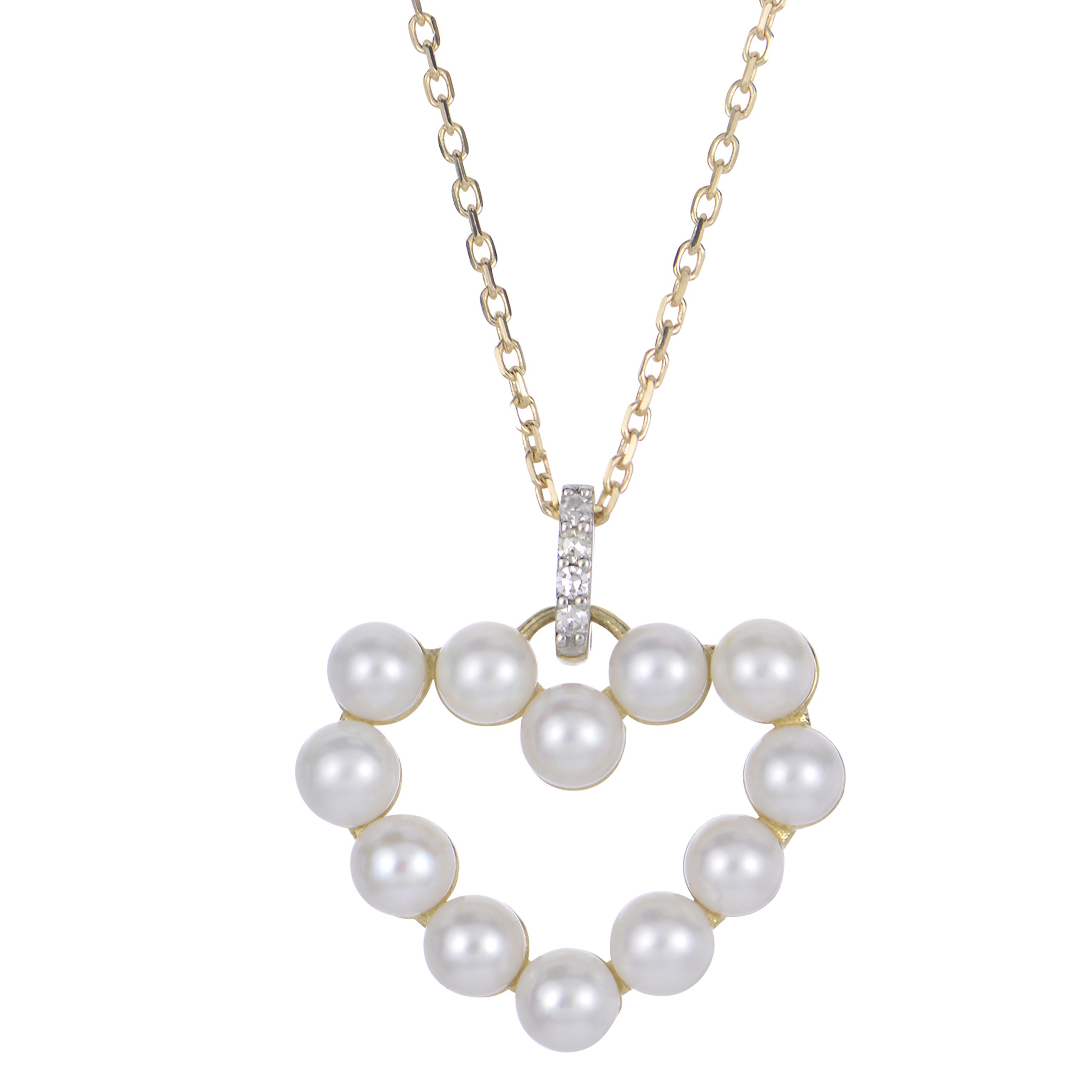 14KY 18″/16″ 3-3.5MM AA FWCP & DIAMOND NECKLACE