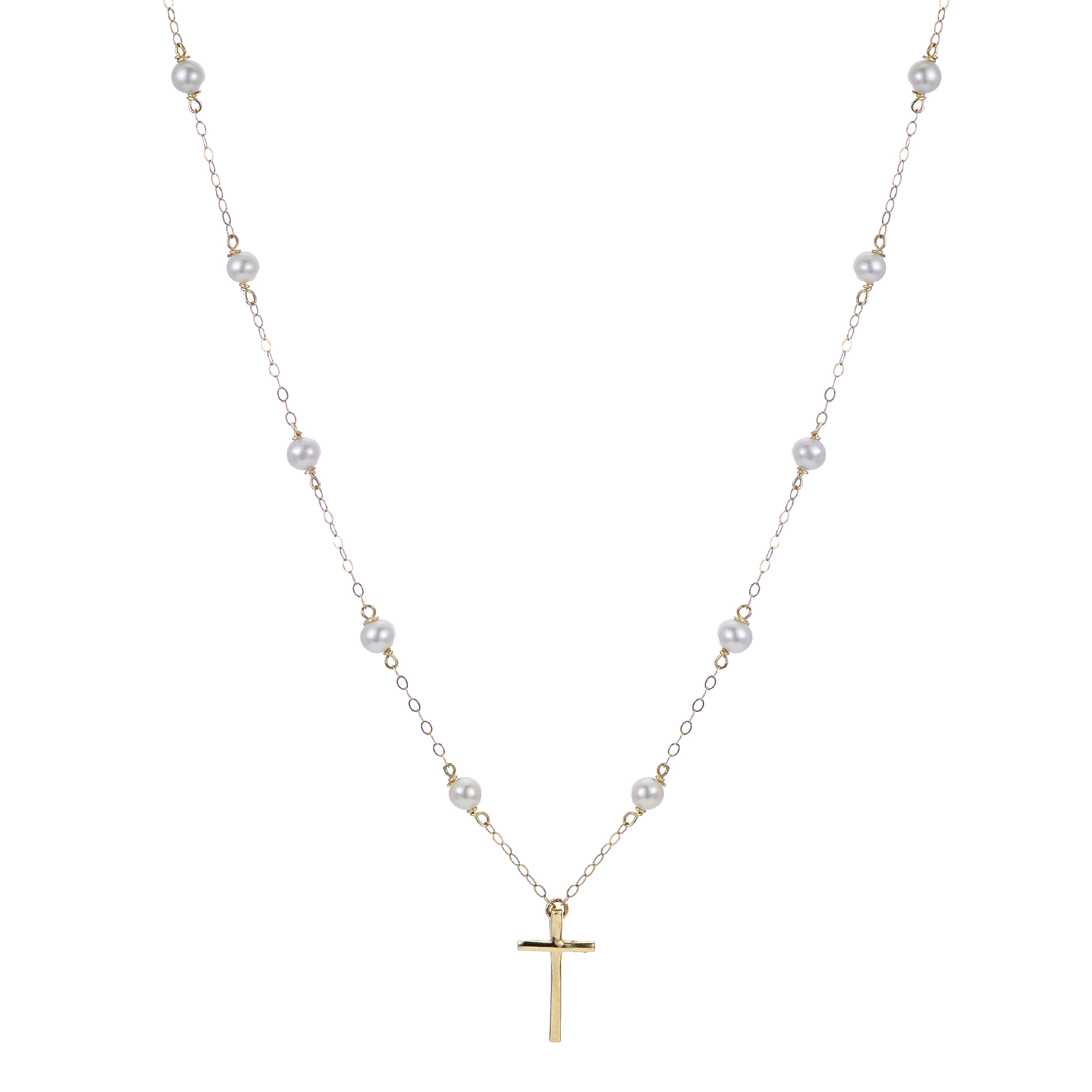 14K 13-15″ 4-4.5MM FWP CROSS NECKLACE