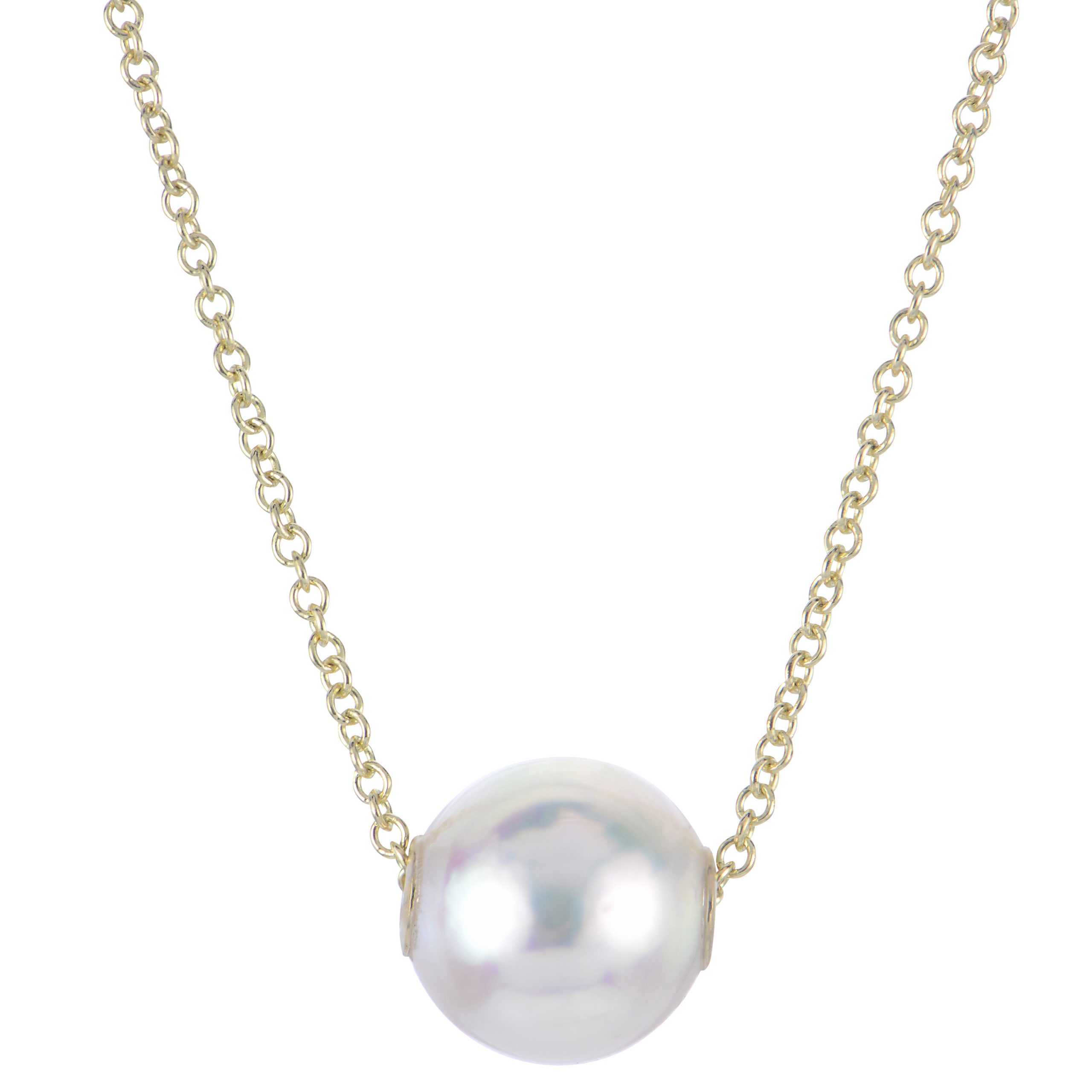 14KT Yellow Gold Akoya Pearl Solitaire Necklace