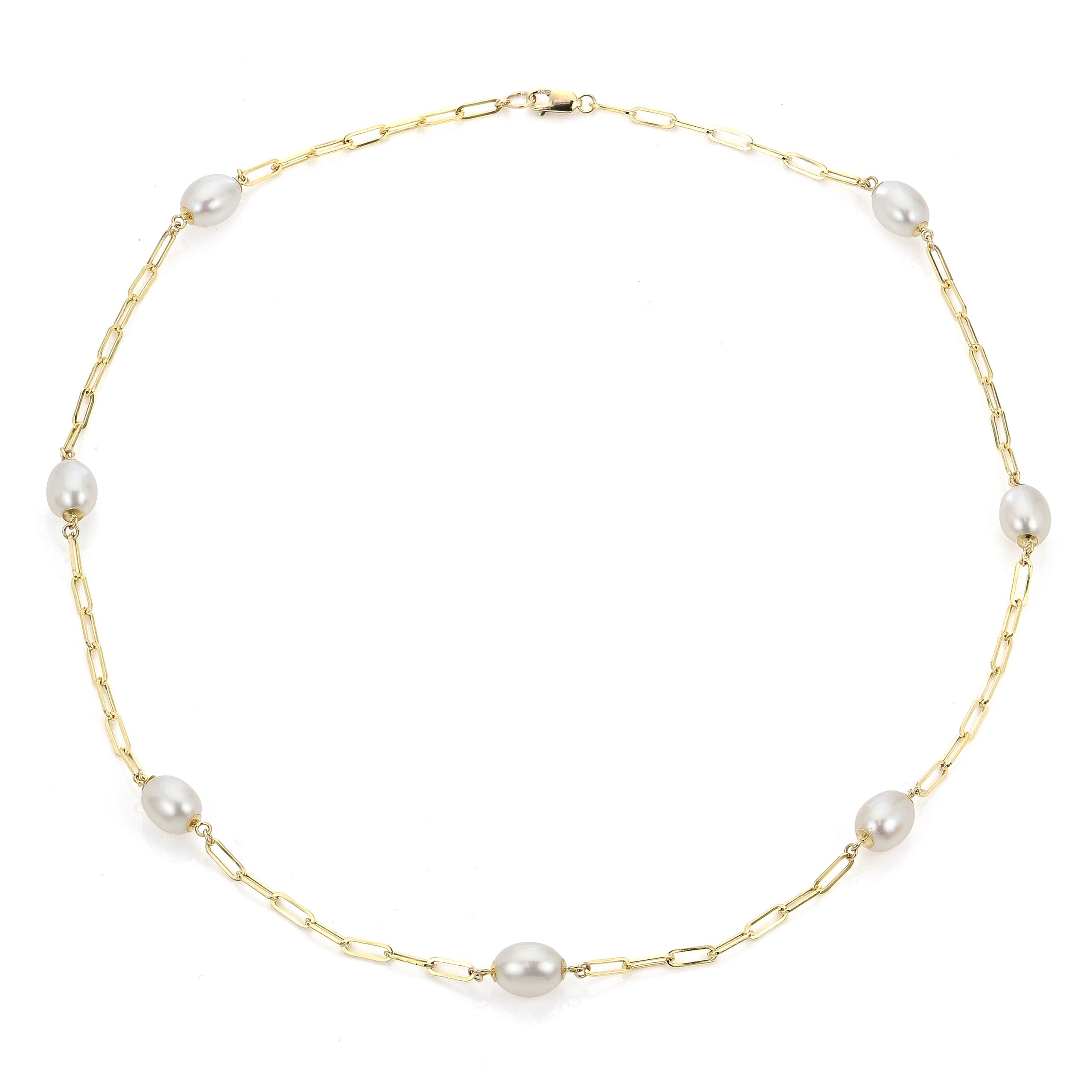 18″ 14KY 7-8MM FW CULT PEARL PAPERCLIP NECKLACE