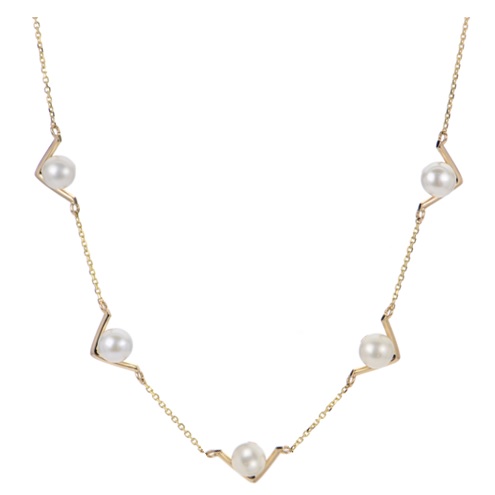 14KY 16/18″ 4.5-5MM FWP “V” NECKLACE ON D/C CABLE CHAIN