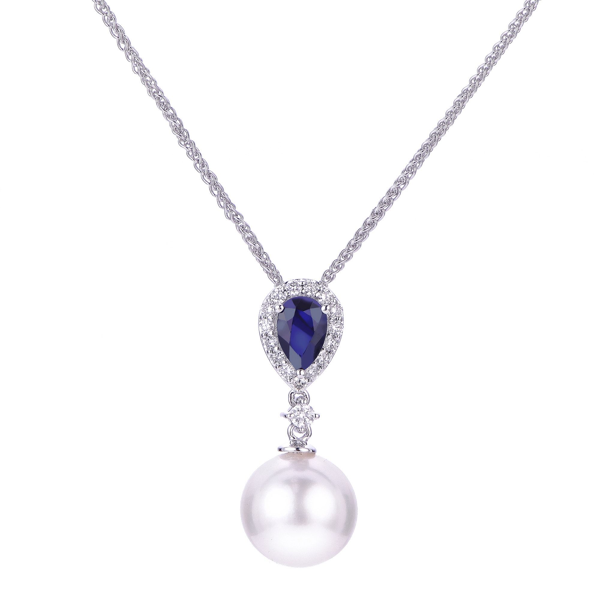 18″ 14KW BLUE SAPPHIRE & DIA 9-9.5MM AKOYA DROP PENDANT