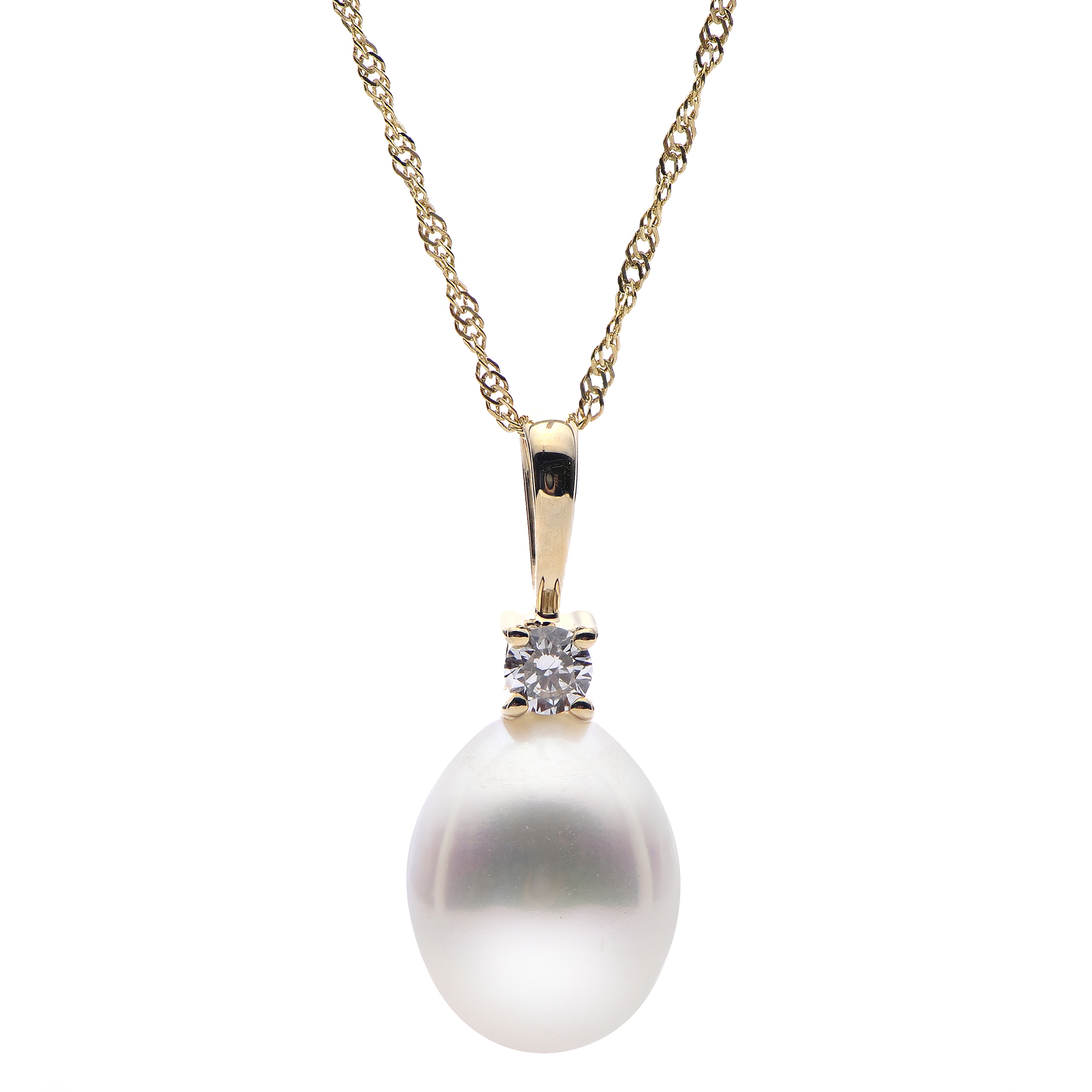 18″ 14K 9-10MM AA WHITE FWP & DIA PENDANT
