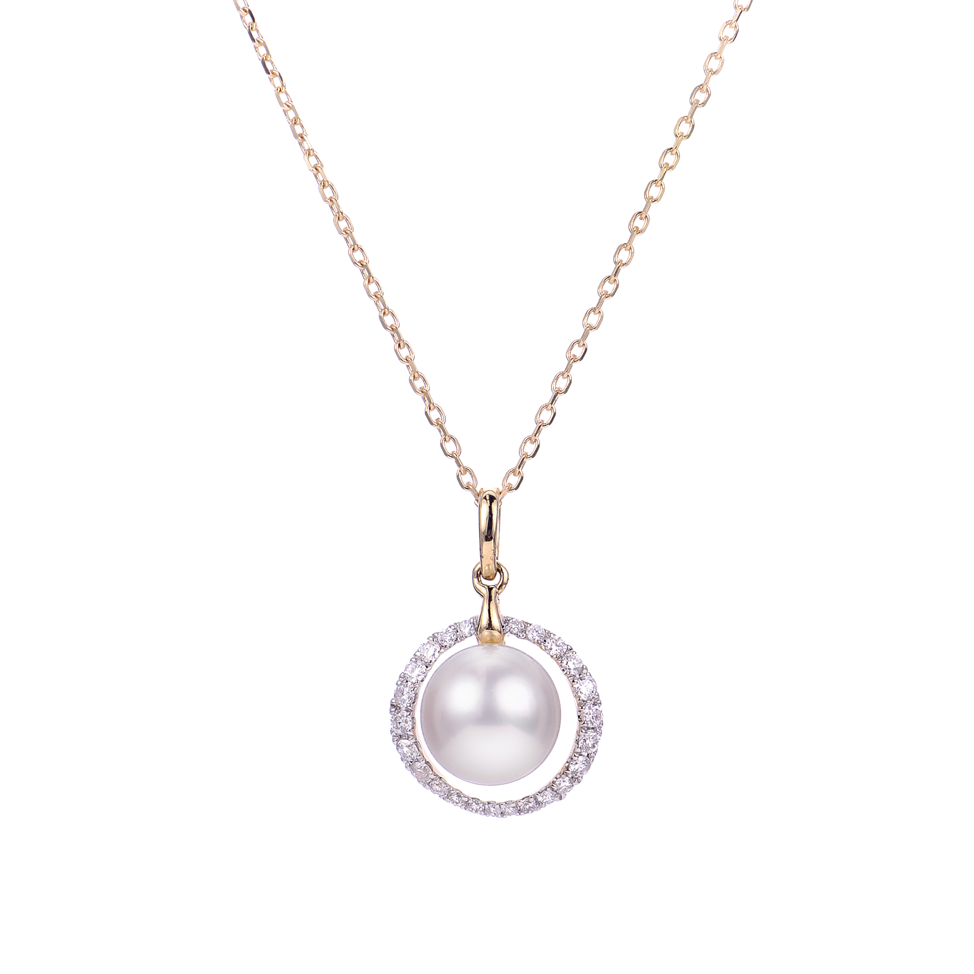 14KY 7.5-8MM FWAA PEARL & DIAMOND HALO PENDANT