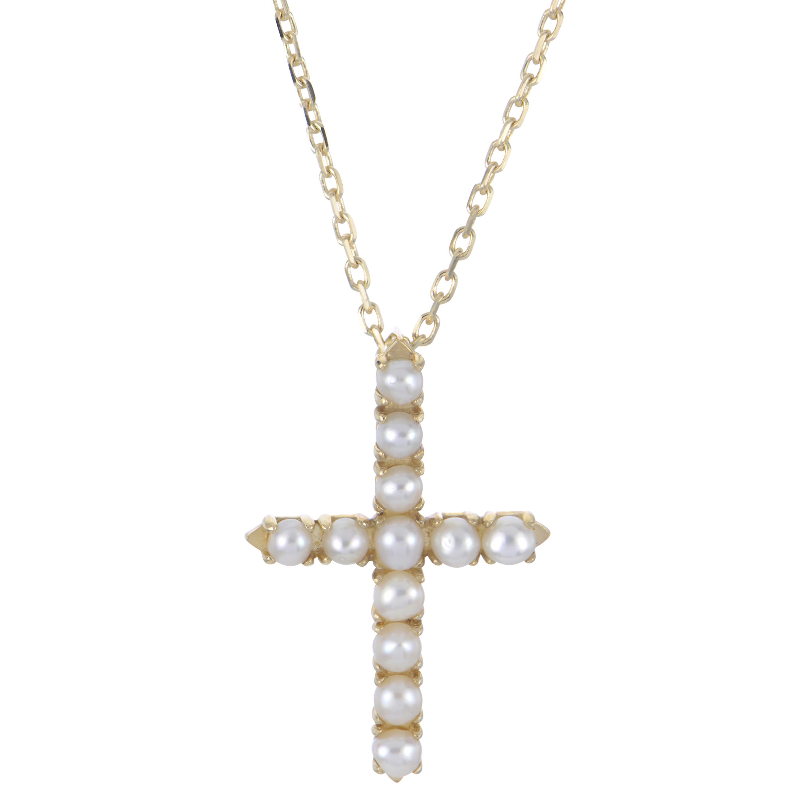 16″ W/2″ EXT 14KY FWCP SEED PEARL CROSS
