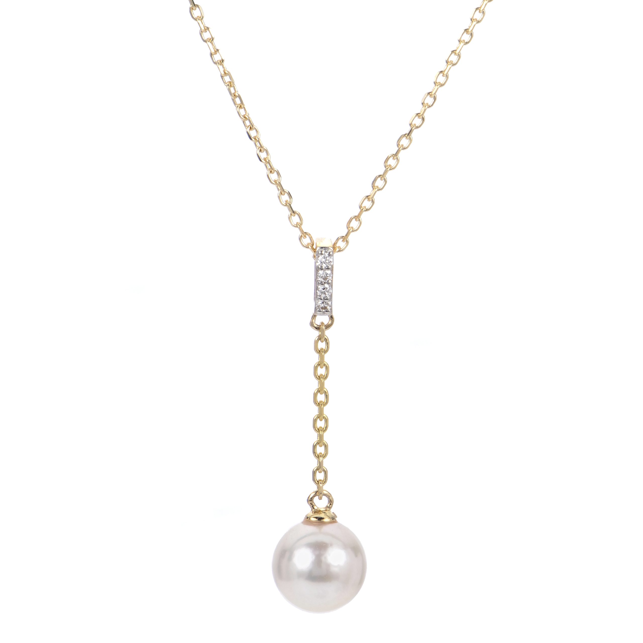18″/16″ 14KY 7-7.5MM AKOYA PEARL DIA PENDANT