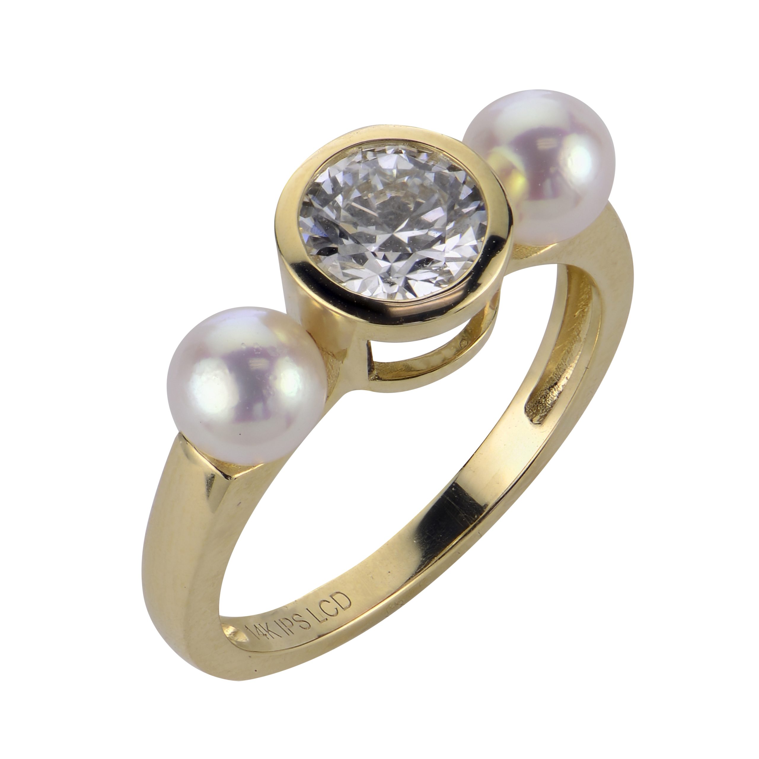 14KY 5-5.5MM HL AKOYA PEARL & LAB GROWN DIA RING(SZ 7)