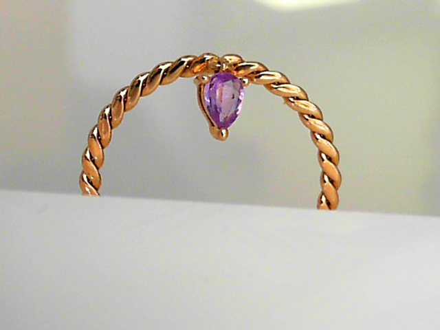 JEWELYRIE 14 Karat Rose Stackable Flat Twist With Amethyst Dangle Fashion Ring Size 6 one Pear Amethyst