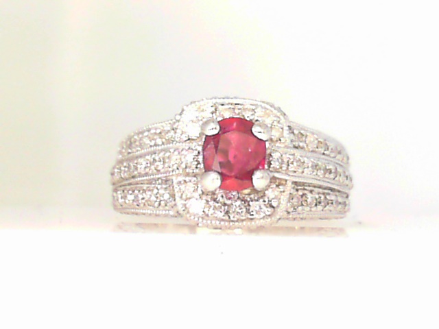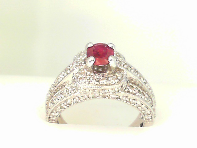 Lady’s Fashion Ring one Oval Ruby 1.00tw Round Diamonds