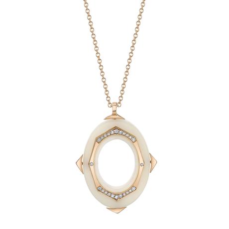 Lady’s Rose 14 Karat Open Link Necklace Length 16 With 0.16Tw Round Diamonds on Palm Ivory