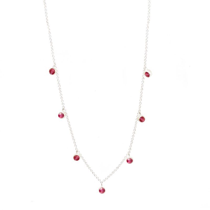 Lady’s Ruby ForgedSterling Silver Necklace Length 17 with 7 Round Rubies