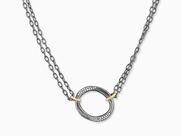 Lady’s Two Tone 24K Yg & .925 Oxidized & Satin Orion Necklace Length 17 With = 0.22Tw Round Diamonds Style: Cable Link
