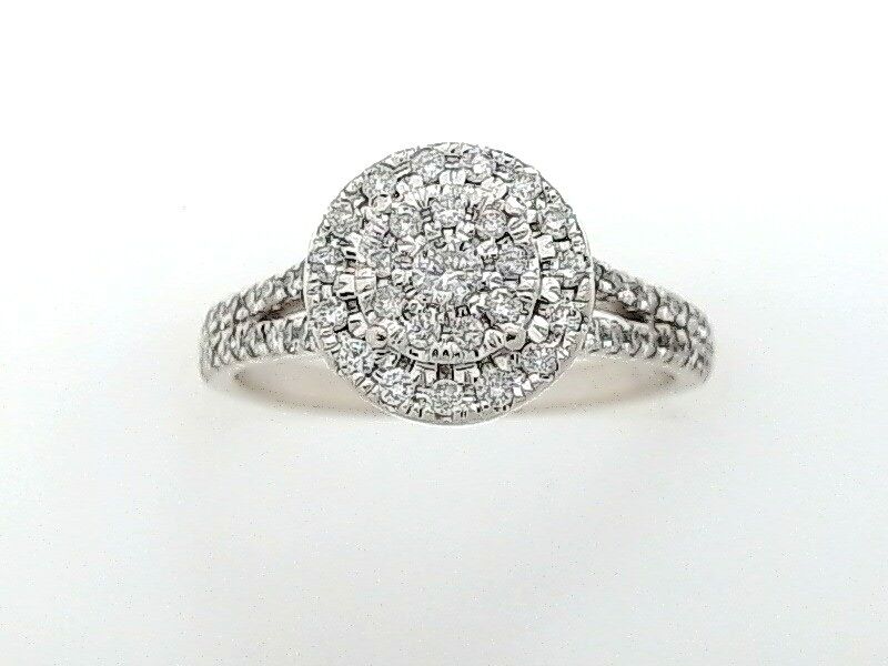 Lady’s White 10 Karat Cluster Engagement Ring Size 6.5 With = Round Diamonds