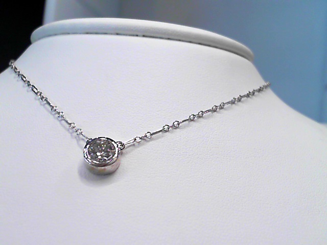 Lady’s White 14 Karat Bezel Necklace Length 18 With One 1.32Ct Round G/H Si2 Diamond