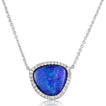 Lady’s White 14 Karat Boulder Opal Austr Opal Necklace With One = Various Shapes Boulder Opal Doublet Opal Chain: Cable Link