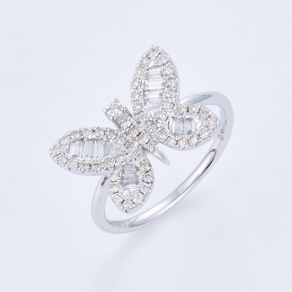 Lady’s White 14 Karat Butterfly Halo Fashion Ring Size 8 0.28tw Round G/H SI1 Diamonds