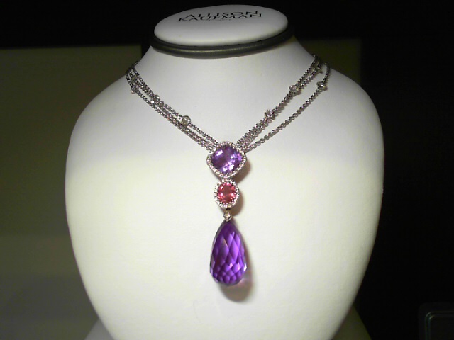 Lady’s White 14 Karat Classic Necklace With Various Shapes Amethysts, Round Diamonds And Other Stones Chain: Cable Link