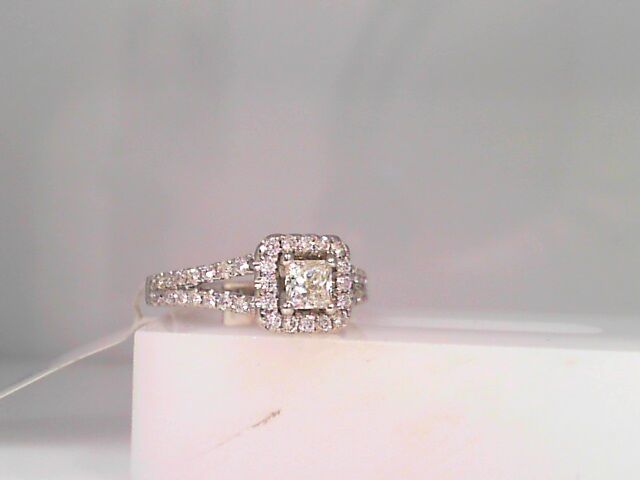 Lady’s White 14 Karat Contemporary Engagement Ring Size 5 With One 0.30Ct Princess I Si1 Diamond And 0.28Tw Round Diamonds