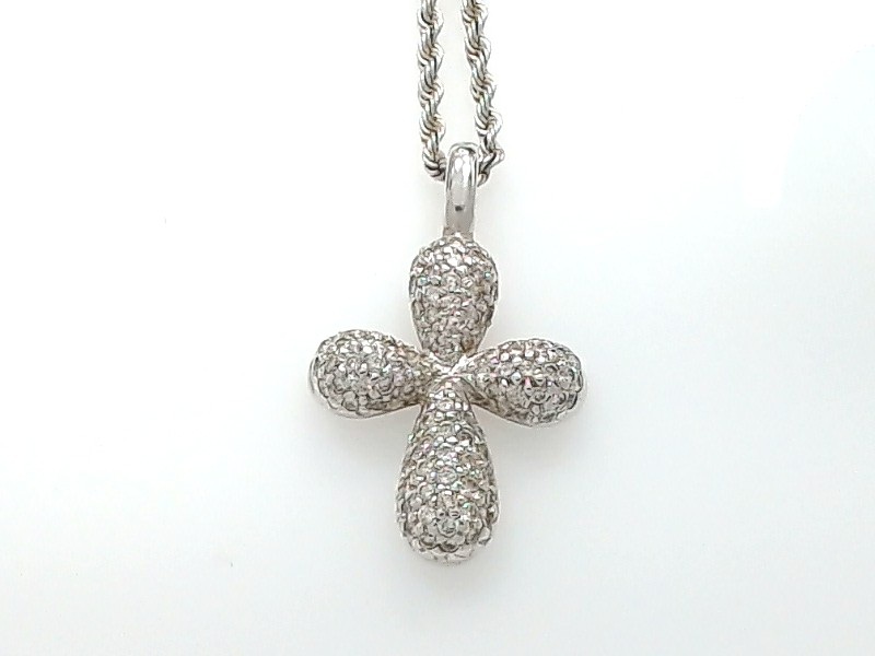 Lady’s White 14 Karat Cross Pendant Length 20 With = Round Diamonds Style: Rope
