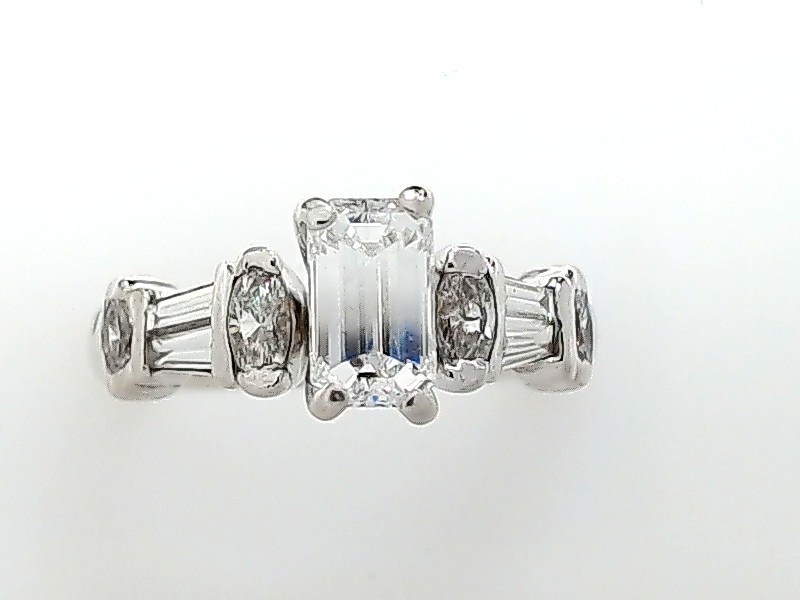 Lady’s White 14 Karat Engagement Fashion Ring Size 6.5 With One = 0.95Ct Emerald F/G Si1 Diamond